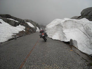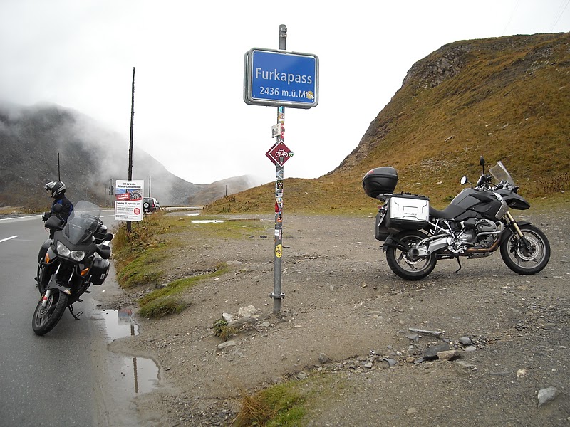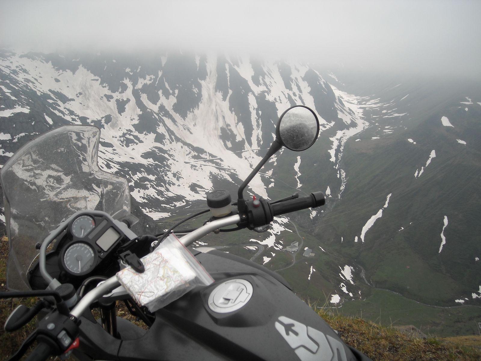 Hemos llegado al Nufenenpas y como estamos un poco altos las nubes han decidido bajar a saludarnos.